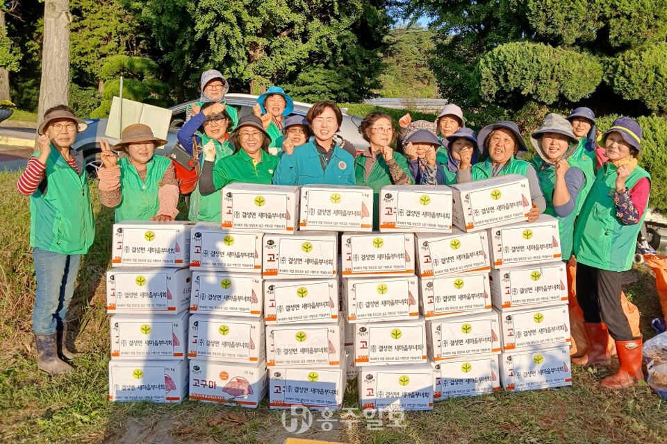 결성면새마을부녀회(회장 이민숙)가 지난 24일 ‘사랑의 고구마 캐기’ 행사를 열고, 정성껏 가꾼 고구마 1100kg(10kg 110박스)을 수확했다.