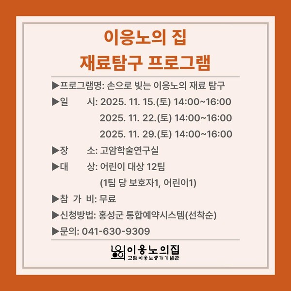 참여 신청은 홍성군 통합예약시스템을 통해 가능하며, 프로그램에 대한 자세한 문의는 고암이응노생가기념관(041-630-9309)으로 하면 된다.