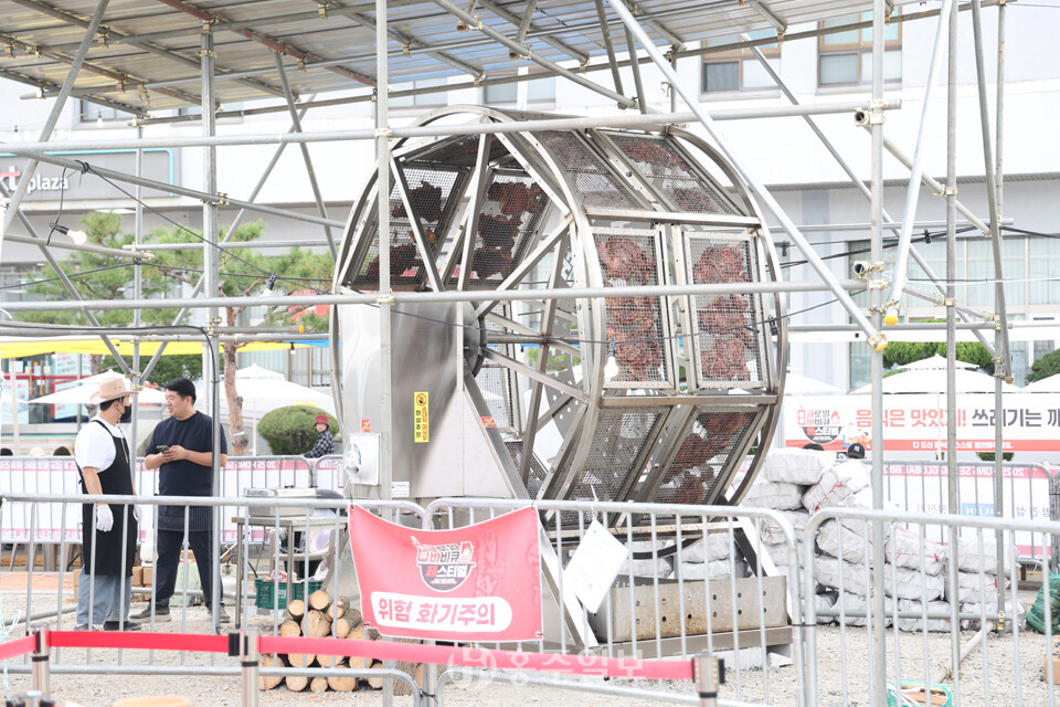올해 홍성글바페의 시그니처 공간은 단연 ‘놀이기구형 대형 그릴존’이었다. △대관람차 △바이킹 △무중력 △회전목마 △스핀 △열기구 △회전 △닭바비큐 등 여덟 종의 새롭게 제작된 대형 바비큐 그릴은 관람객의 시선을 사로잡는 독창적 시도로 주목받았으나, 일부에서는 실질적 운영효율에 대한 비판도 나왔다.