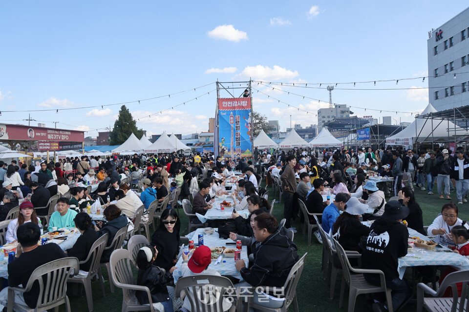 이번 축제의 핵심 키워드는 ‘연결’이었다. 홍성군은 올해부터 홍성글바페와 유기농페스타, 국화축제, 평생학습한마당을 하나의 ‘통합 축제권역’으로 묶었다. 덕분에 방문객의 체류시간이 크게 늘었고, 특정 존으로 관람객이 쏠리는 현상이 줄었다. 한곳에서는 숯불 위에서 고기가 익고, 다른 한곳에서는 국화 향기와 농산물 체험이 이어지는 등 홍주읍성 일원이 하나의 축제무대로 확장됐다.