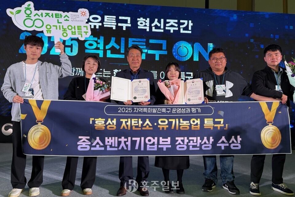 홍성군이 지난 6일 ‘2025년 지역특화발전특구 운영성과 평가’에서 우수특구로 선정돼 중소벤처기업부 장관상을 수상했다.<사진>