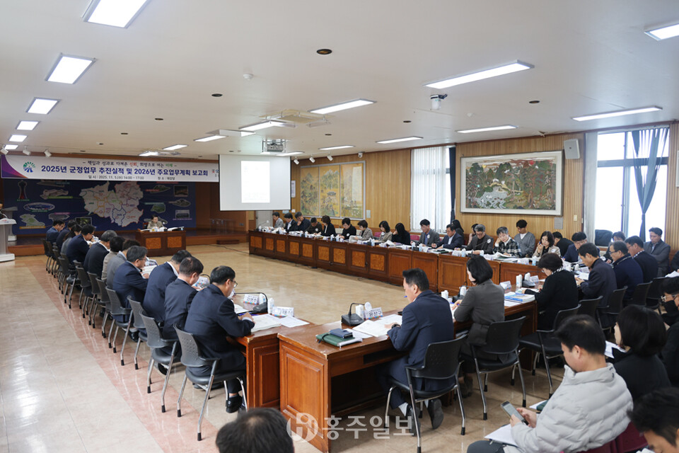홍성군은 지난 5일 ‘2025년 군정업무 추진실적 및 2026년 주요업무계획 보고회’를 개최했다. 특히 군은 이번 보고회에서 새 정부 국정과제를 발굴해 정부의 정책 기조에 기민하게 대응키로 했다.