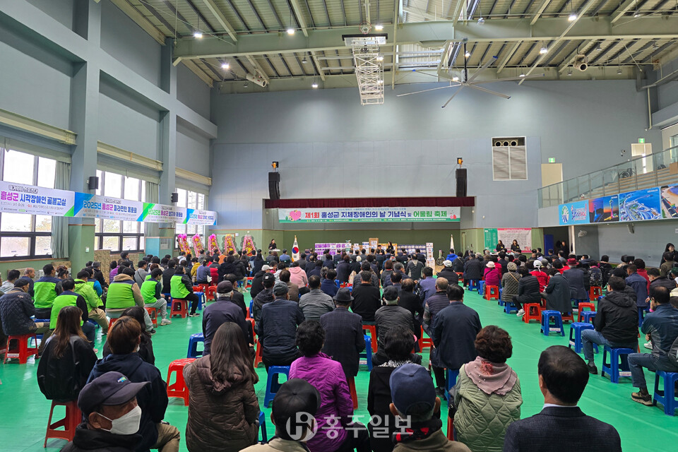 [홍주일보 홍성=김용환 인턴기자] (사)충남지체장애인협회 홍성군지회(지회장 복천규)는 지난 7일 홍성군 장애인스포츠센터에서 ‘제1회 홍성군 지체장애인의 날 기념식·어울림 축제’를 성황리에 개최했다.