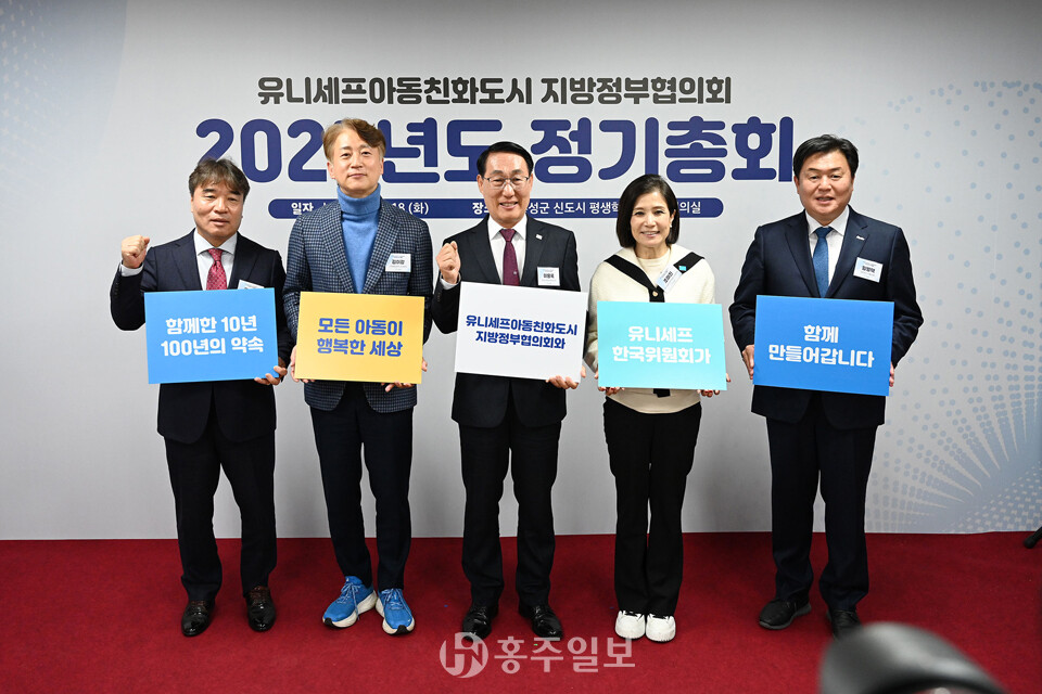 지난 18일 열린 ‘2025년 유니세프아동친화도시 지방정부협의회 정기총회’에서 회원 지방정부 단체장과 유니세프 한국위원회 관계자 등이 참석한 가운데 연임안이 의결됐다.