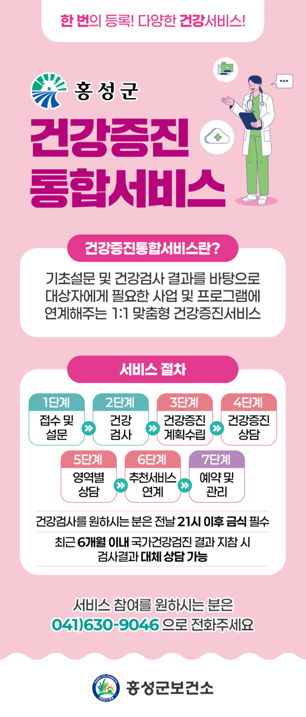 홍성군은 군민의 생활습관 개선과 실천을 지원하기 위해 ‘건강증진 통합서비스’를 지난 8월부터 운영하고 있다.