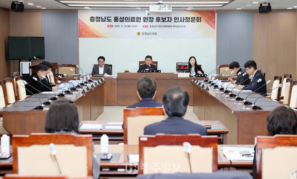 [홍주일보 한기원 기자] 충남도의회 ‘충청남도 홍성의료원 원장 후보자 인사청문특별위원회(위원장 정광섭)’는 지난 24일 김건식 원장 후보자를 대상으로 인사청문회를 열고 공공의료기관 수장으로서의 자질과 역량을 면밀히 검증했다.