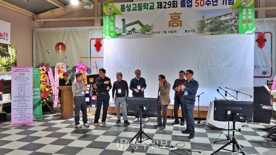 [홍주일보 홍성=한기원 기자] 홍성고등학교 제29회 동창회(회장 최진복)는 졸업 50주년을 기념한 송년회(추진위원장 주진오)를 지난달 29일 용봉산 돌산가든에서 개최했다.<사진>
