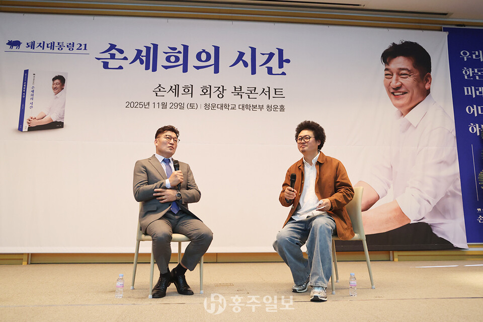 [홍주일보 홍성=김용환 인턴기자] 손세희 전 대한한돈협회장<사진>이 임기를 마무리하며, 지난 여정을 담은 저서 《돼지대통령21, 손세희의 시간》 출간을 기념해 지난달 29일 청운대학교 청운홀에서 북콘서트를 열었다.