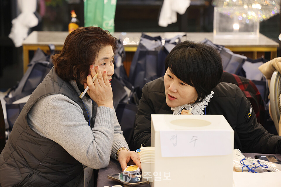 또한 향우회 임원과 내빈이 무대로 나와 축배를 들고 케익을 절단하며 향우회 창립 56주년 정기총회와 송년의 밤 행사의 성공적인 개최를 자축했다.