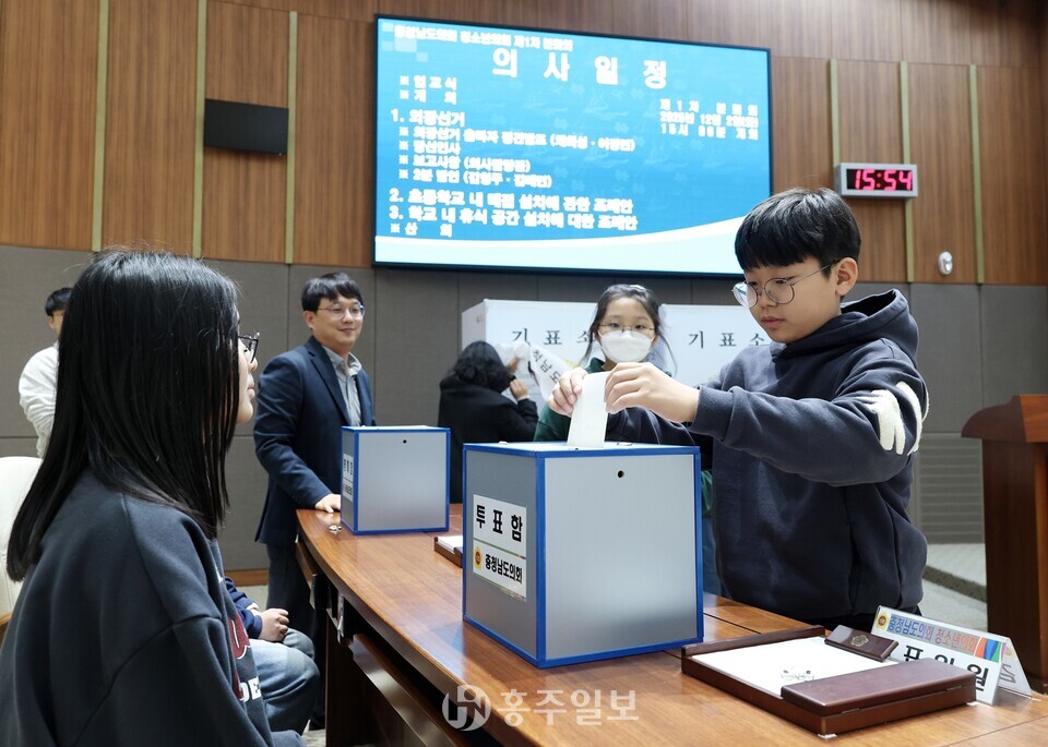 먼저 의장 선거가 진행돼 출마 학생들의 정견 발표를 청취한 뒤 직접 투표를 통해 의장을 선출했다. 학생들은 주민의 뜻을 반영해 대표를 뽑는 과정의 의미를 체감하며 지방의회 구성 원리를 이해하는 시간을 가졌다.