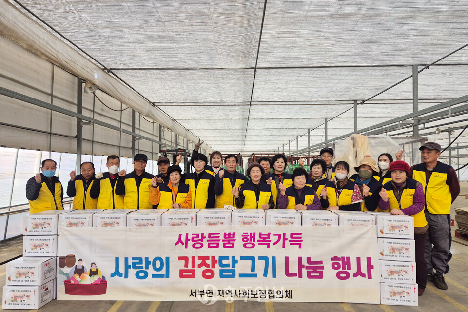 홍성군 서부면(면장 이순화)은 지난달 28일 서부농협 벼 육묘장에서 서부면 지역사회보장협의체(민간위원장 이서준) 주관으로 ‘2025년 사랑의 김장나눔 행사’를 실시하고, 관내 취약계층 90가구에 직접 담근 김장김치를 전달했다.