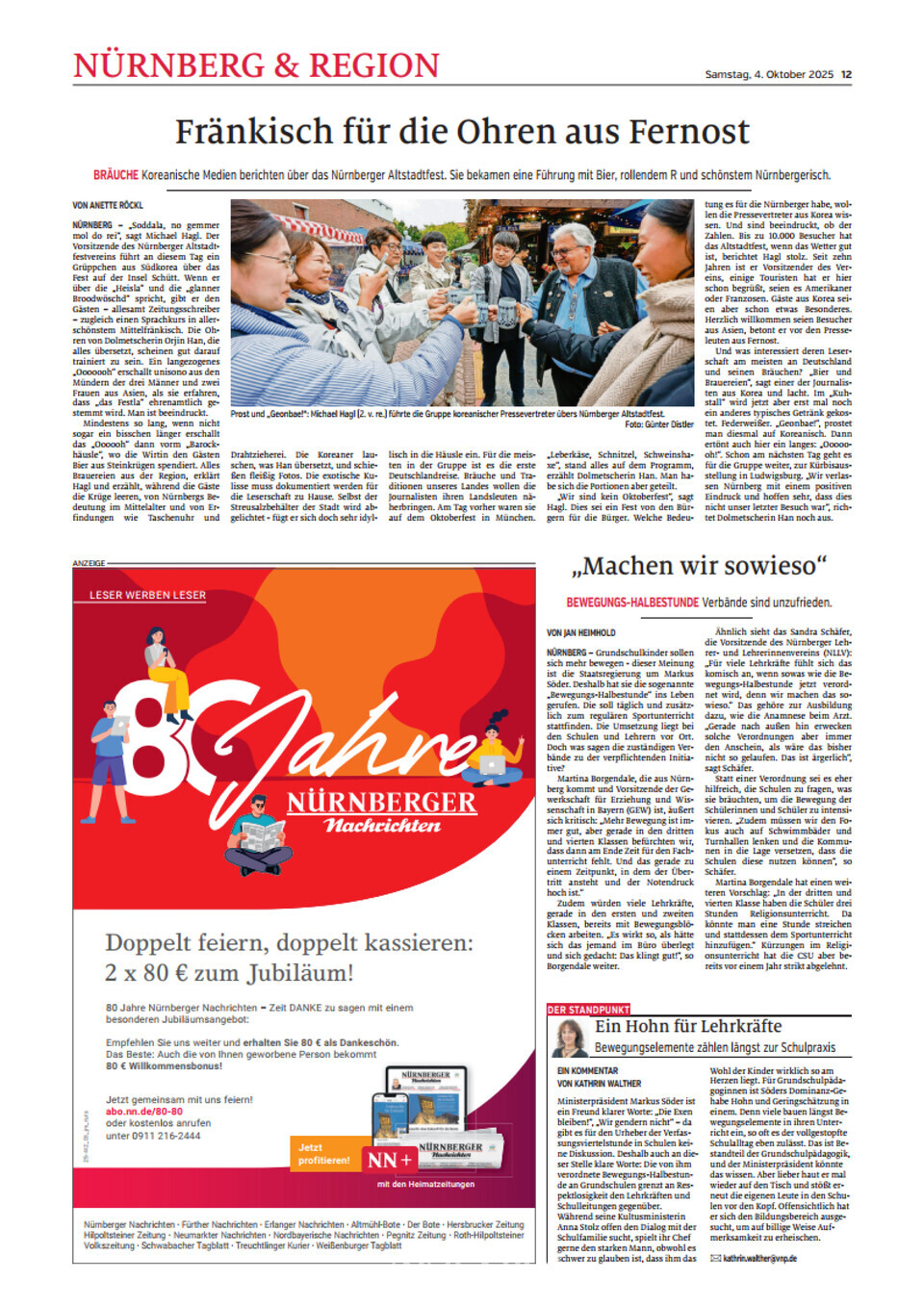 <홍주신문>이 주관한 한국 지역신문 공동취재단의 독일 현장취재가 현지 유력 일간지에 소개됐다. 뉘른베르크에서 열린 ‘제53회 구시가지 축제’를 취재한 공동취재단의 활동을 프랑켄 지역 대표 일간지 <Nurnberger Nachrichten(뉘른베르거 나흐리히텐)>이 10월 4일자 지면과 온라인을 통해 별도 기사로 보도한 것이다.