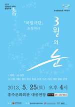 ◇ 국립극단 초청공연 '3월의 눈'= 오는 25일 홍주문화회관 대공연장에서 국립극단 초청공연으로 연극 '3월의 눈'이 공연된다. 백성희·장민호 극장 개관 기념작으로 2011년 초연한 국립극단 대표 레퍼토리이다. 출연진은 백성희, 변희봉, 박혜진 (이순 역 더블캐스팅), 정진각, 박경근, 김효숙, 김현웅, 조주경, 고병택, 이선정, 서제광, 김영진 등이다. 러닝타임 90분. 14세 이상 관람가능하며 관람료는 전석 5000원이다. 예매 문의는 홍주문화회관(630-9063)으로 하면 된다.