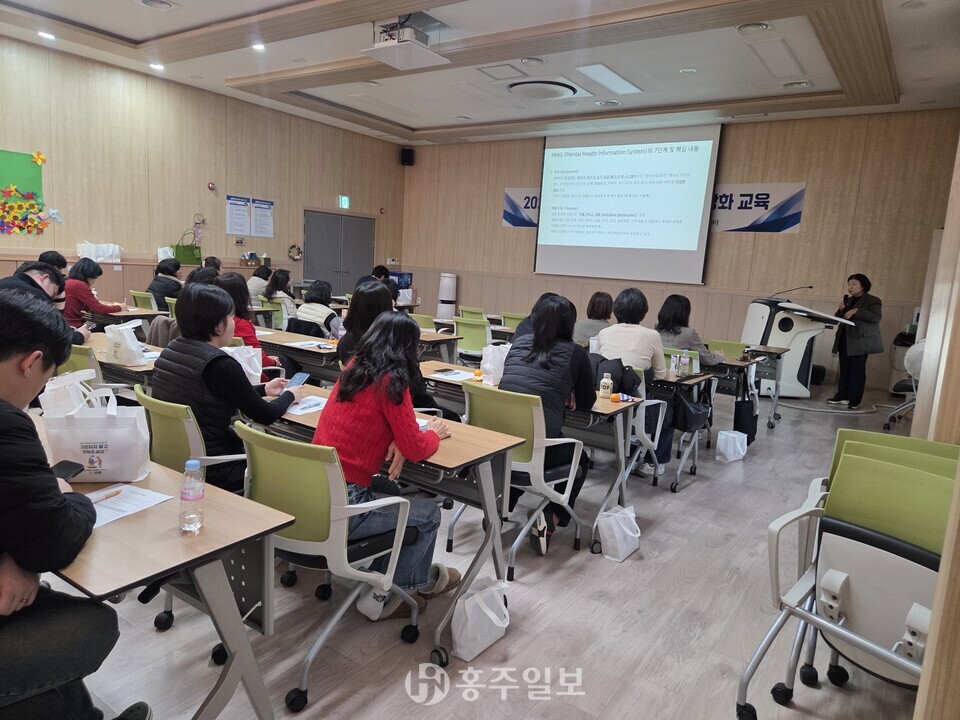 이번 교육에는 홍성군정신건강복지센터, 보건지소, 보건진료소 등 총 40여 명의 실무자가 참석했으며, 강의는 지역사회 정신건강 분야에서 풍부한 임상 경험과 전문성을 갖춘 청운대학교 간호학과 강미경 교수가 맡아 실무중심적인 교육으로 진행됐다.