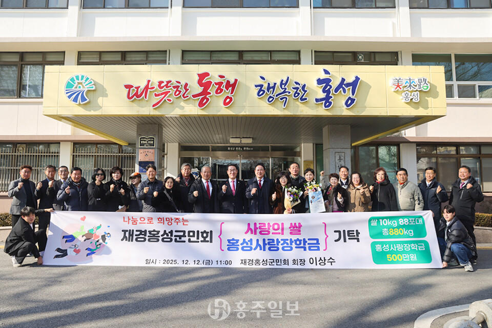 홍성군은 지난 12일 군청 2층 회의실에서 ‘2025년 재경홍성군민회 사랑의 쌀 및 홍성사랑장학금 기탁식’을 열었다. 이날 행사에는 이용록 홍성군수를 비롯해 재경홍성군민회 이상수 회장과 복봉규 명예회장 등 임원진과 군청 관계자 등 30여 명이 참석했다.