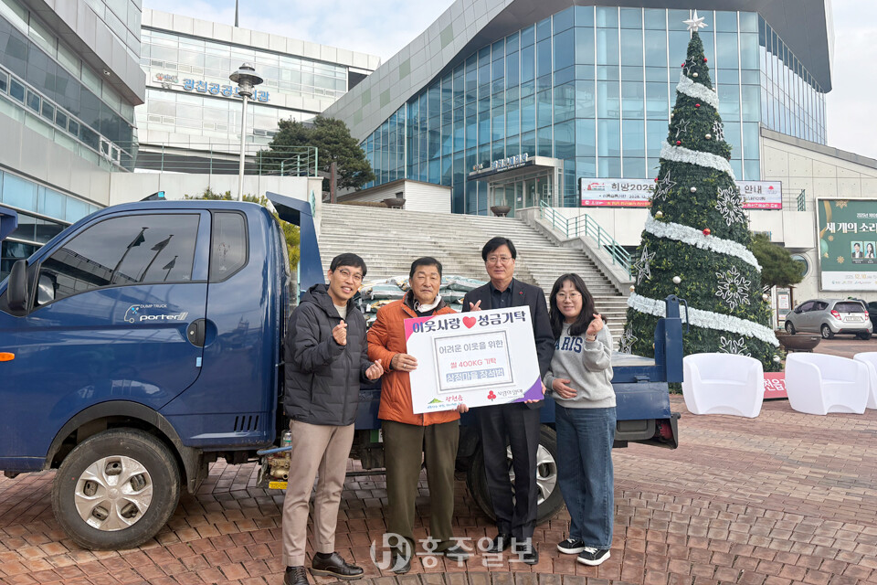 홍성군 광천읍 행정복지센터(읍장 정희채)는 지난 15일 상정마을 장석범 씨가 광천읍 행정복지센터에 직접 방문해 백미 400kg을 기탁했다고 밝혔다. 이날 기탁받은 쌀은 지역 내 소외계층 등 어려운 이웃들에게 전달될 예정이다.