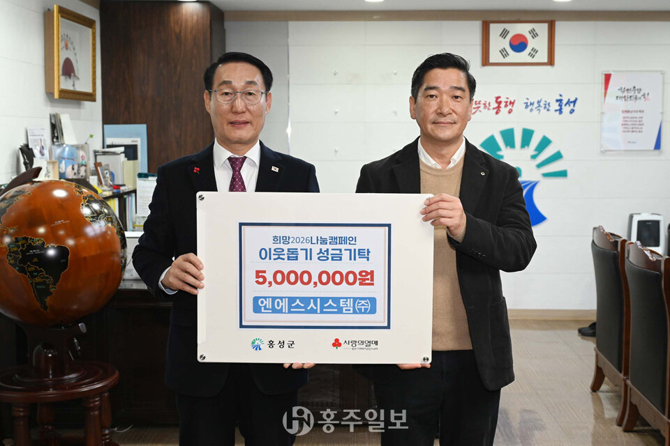 홍성군 내포도시첨단산업단지 내 신규로 입주하여 공장을 준공한 엔에스시스템㈜(대표이사 최종민)이 지난 19일 ‘희망 2026 나눔 캠페인’에 성금 500만원을 기탁하여 지역 이웃과 함께하는 나눔문화 조성에 힘을 보탰다.