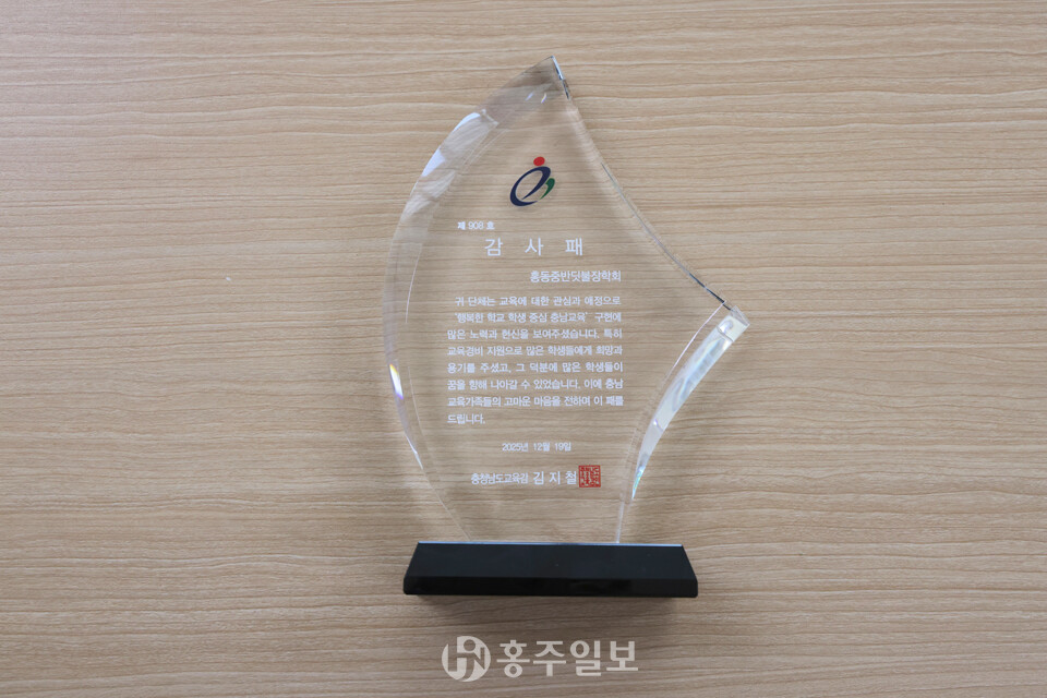2025년 12월 19일, 반딧불장학회는 김지철 충청남도교육감으로부터 ‘교육경비 지원 유공자 감사패’를 받았다. 감사패에는 다음과 같은 문구가 새겨졌다.