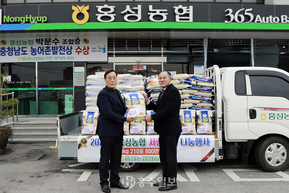 이번 나눔을 통해 홍성농협은 홍성읍에 100포, 관내 기관 및 단체에 110포의 쌀을 각각 기부했다.