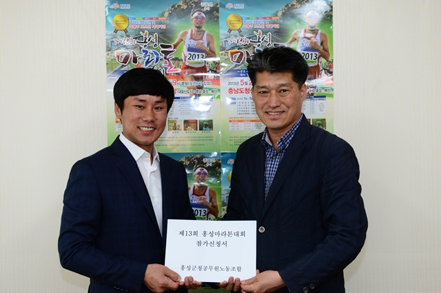 지난 15일 홍성군청공무원노동조합(위원장 이순광·이하 홍공노)은 지역에서 개최되는 행사의 성공적인 개최를 위해 50여명의 조합원으로 단체 출전팀을 구성하고 홍성군체육회 박성완 사무국장에게 신청서를 제출했다.