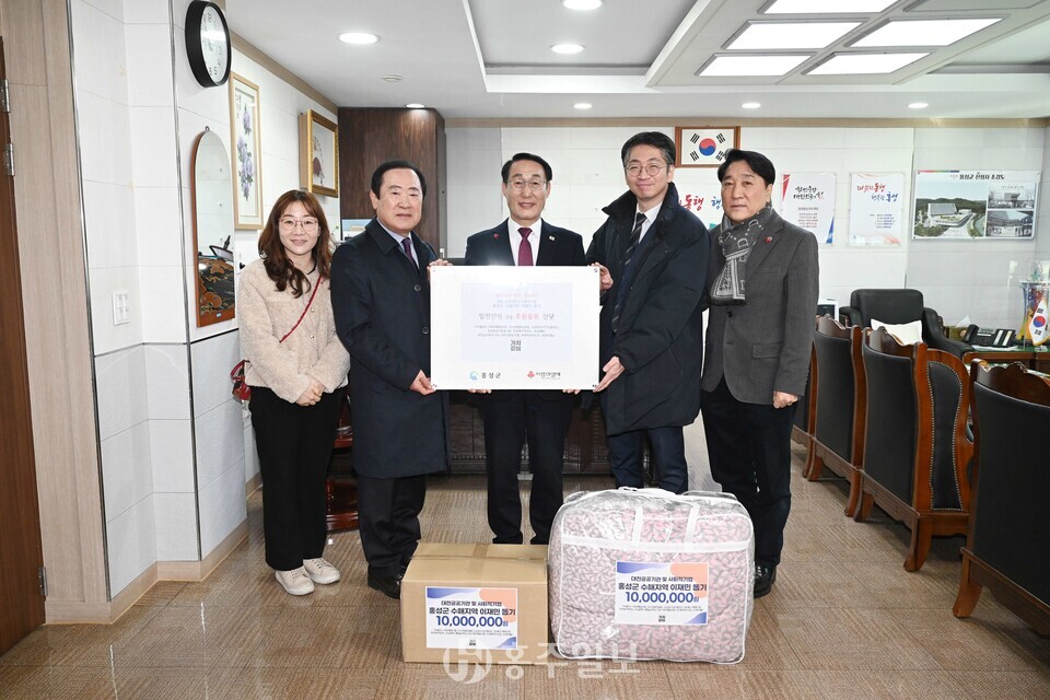 이용록 홍성군수는 “지난 여름 수해로 어려움을 겪은 주민들을 위해 따뜻한 나눔을 실천해주신 가치플러스 사회적협동조합에 깊이 감사드린다”며 “기부해주신 물품을 필요로 하는 가정에 잘 전달될 수 있도록 세심히 살피고, 앞으로도 민·관이 함께하는 촘촘한 지원을 이어가겠다”고 감사의 뜻을 전했다.
