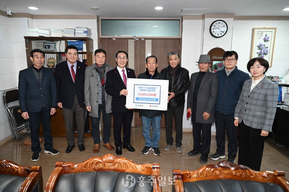 이번 성금은 지난 19일 결성농요 야외공연장에서 홍성결성농요보존회(회장 최광돈)가 주관한 ‘희망2026 나눔캠페인’ 이웃사랑 성금모금 홍성결성농요 공연에서 연말연시 어려운 이웃을 돕기 위해 모금됐다.