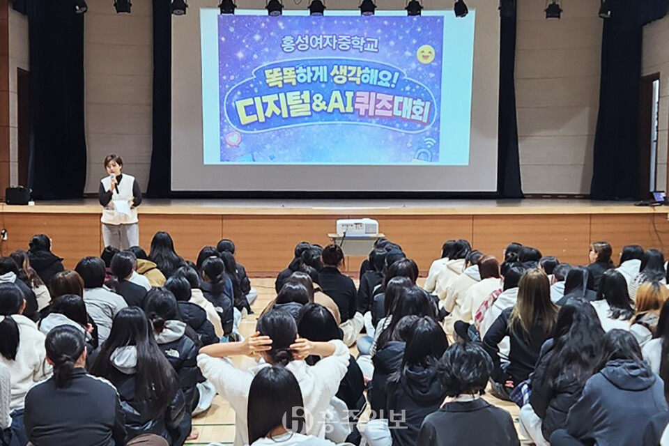 홍성여중은 지난해 12월 30일 1학년 학생들을 대상으로 ‘똑똑하게 생각해요! 디지털·AI 퀴즈대회’를 열었다고 밝혔다. 이번 프로그램은 1학년 각 교과 담당 교사들이 참여해 학생들의 디지털 문해력 향상과 디지털 시민성, 윤리의식 함양을 목표로 한 통합수업 형태로 진행됐다.