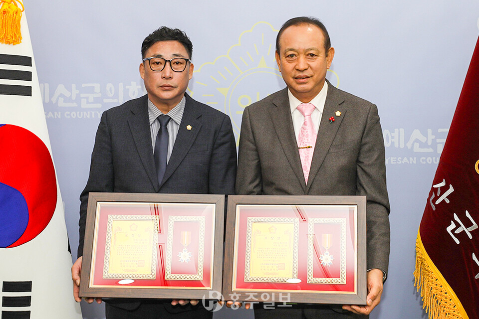 예산군의회 장순관 의장과 김영진 의원이 최근 DMB국회방송 주관 대한민국 지방자치 30주년 기념 의정대상을 수상했다.<사진>