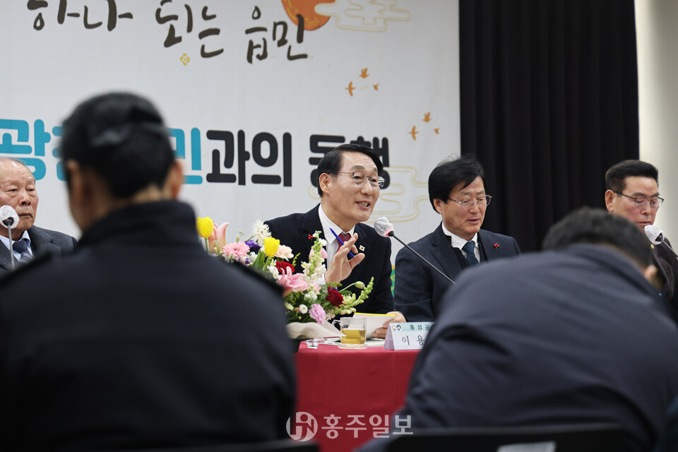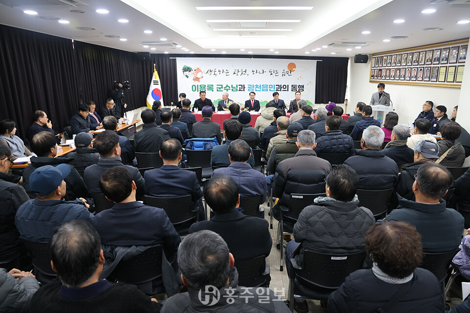 이용록 홍성군수의 병오년(丙午年) 새해 읍·면 순방이 이어지는 가운데, 지난 12일 오전 광천읍, 오후 갈산면을 차례로 방문해 주민들과 지역 현안을 논의했다. 이용록 군수는 이날 군정 운영 방향을 설명하고, 주민 건의사항을 직접 청취하며 현장 소통에 나섰다.