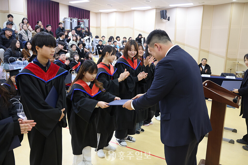 이성행 대표는 지난 8일 열린 광천초등학교 졸업식에 참석해 졸업을 앞둔 6학년 학생들에게 장학금을 전달했다.<사진>