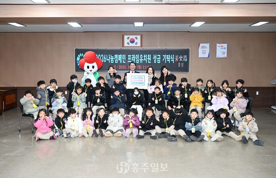 이용록 홍성군수는 “아이들의 순수한 마음이 담긴 성금이 더욱 아름답고 고맙게 느껴진다”라며 “정성 어린 나눔을 실천해 준 프라임유치원과 아이들에게 깊이 감사드린다”고 전했다.