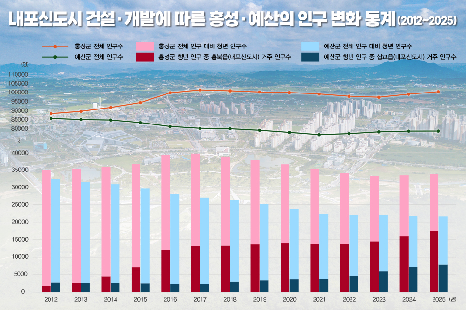 내포신도시 조성 13년. 인구 통계는 이제 단순한 증가와 감소를 넘어, 지역 내부에서 생활권과 인구 구조가 어떻게 재편되고 있는지를 묻고 있다. 청년세대의 이동이 만들어낸 이 변화는, 홍성군과 예산군이 동시에 마주한 다음 단계의 과제를 조용히 가리키고 있다.
