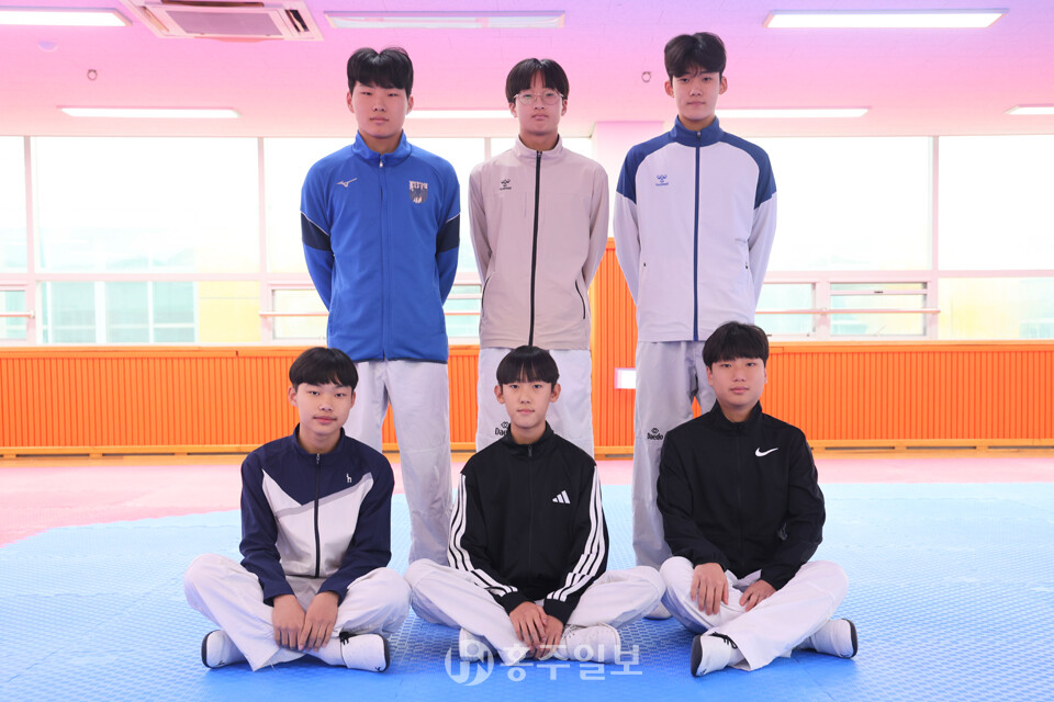 김민우 선수는 “초등학교 6학년 끝 무렵, 부모님의 권유로 도장을 찾아 겨루기를 체험하면서 재미를 느꼈고, 그렇게 태권도를 시작하게 됐다”며 입문 계기를 전했다. 자신의 강점을 묻자, 그는 “상대와 붙어 돌려차기로 공격하는 기술”이라 답했으며, 그동안 가장 힘들었던 순간에 대해선 “대회에서 모든 경기가 끝난 뒤 체력이 완전히 소진됐을 때”라며 “그렇게 힘든 날엔 좋아하는 영상(유튜브)을 보면서 회복한다”고 말했다. 가장 기억에 남는 순간은 “2024년 처음으로 은메달을 수상했을 때”라며 “대회를 준비할 땐, 상대가 저보다 키가 크거나 다리가 길 수도 있기 때문에 붙어서 차는 연습을 많이 하고, 하루 전날엔 잠자리에 일찍 든다”고 답했다. 쉬는 날엔 대개 집에서 TV를 시청하거나 컴퓨터 게임을 하면서 휴식을 취한다는 그는 “고등학교 진학 후에도 메달을 많이 따 좋은 대학에 입학하고, 실업팀에 들어가 제 이름을 알리는 게 목표”라며 의지를 밝혔다.