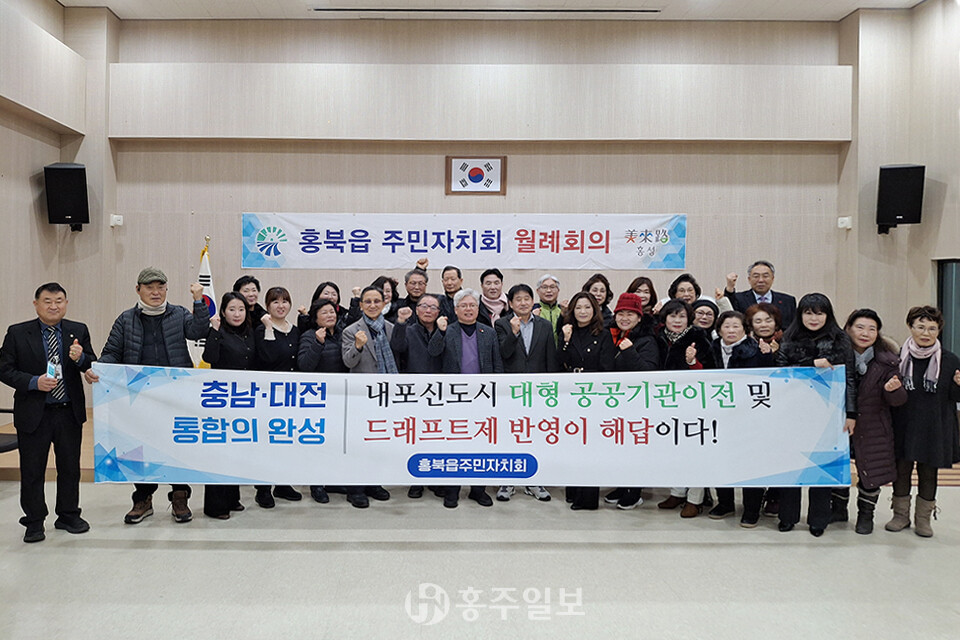 홍북읍주민자치회(회장 정윤)가 충남·대전 행정통합 논의와 관련해 내포신도시의 역할 강화를 촉구하는 결의문을 채택했다.