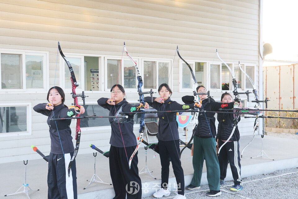 홍성여자중학교 양궁부는 1973년 창단돼 52년의 역사를 이어오고 있다. 현재 양궁부에는 예비 1학년 2명을 포함한 총 5명의 학생선수가 소속돼 꾸준히 훈련에 매진하고 있다.