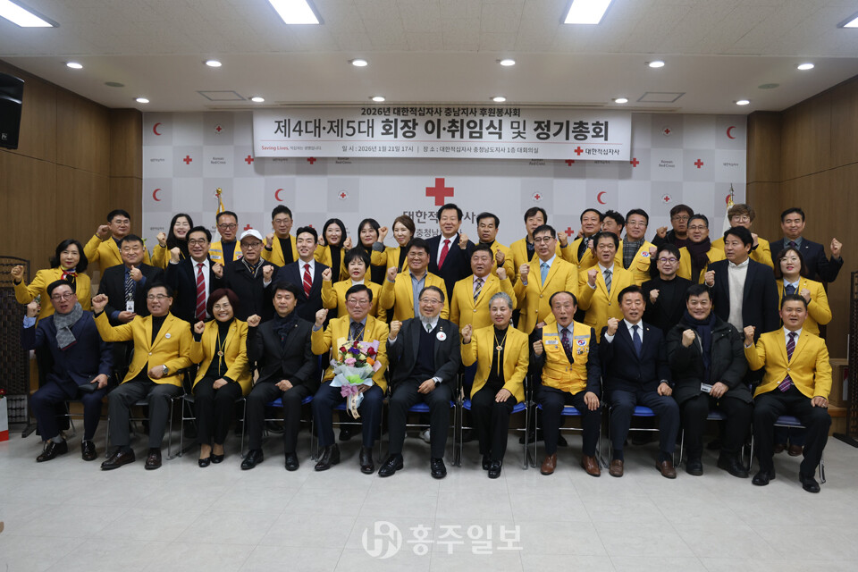 [홍주일보 홍성=김용환 인턴기자] 대한적십자사 충남지사 후원봉사회(이임회장 신세경·취임회장 정선규) 회장 이·취임식 및 2026년 정기총회가 지난 21일 대한적십자사 충남지사 1층 대회의실에서 개최됐다.