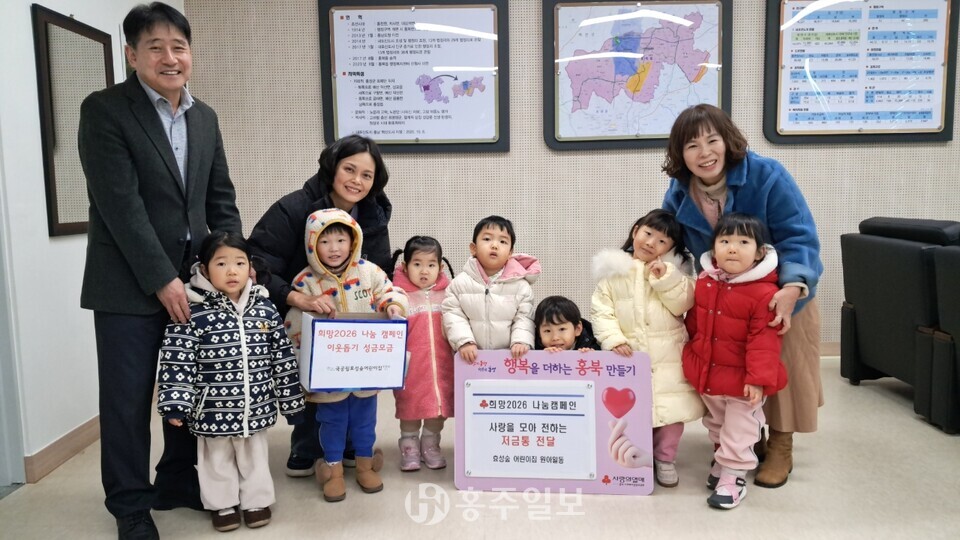 이번 성금은 효성숲어린이집 원아들이 나눔의 의미를 배우며 고사리손으로 정성껏 모은 것으로, 조성희 선생님, 김지연 선생님, 이연신 원장이 함께 참여해 의미를 더했다. 이날 전달식에는 김태기 홍북읍장이 참석해 아이들의 따뜻한 나눔에 감사의 뜻을 전했다.