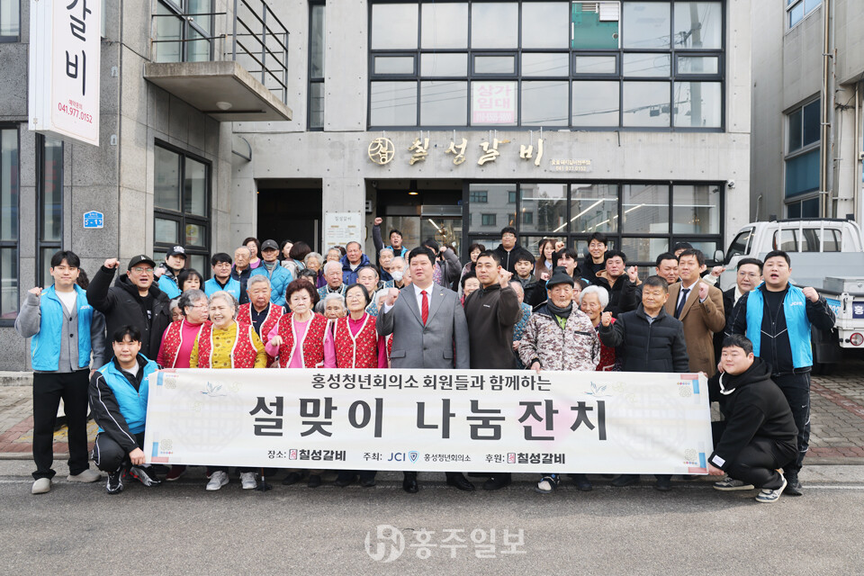 홍성청년회의소(회장 박종권)는 이날 홍성읍 소재 칠성갈비(대표 조석)에서 관내 치매 어르신들을 초청해 ‘설맞이 나눔잔치’를 열었다.