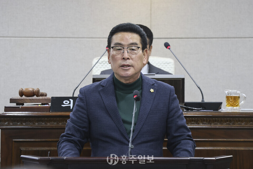 장재석 홍성군의회 의원 12일 열린 제318회 임시회에서 ‘홍성의료원 석면검진체계 안정화를 위한 충남도와 홍성군의 공동책임을 촉구합니다’를 주제로 한 5분 자유발언에 나섰다.<사진>