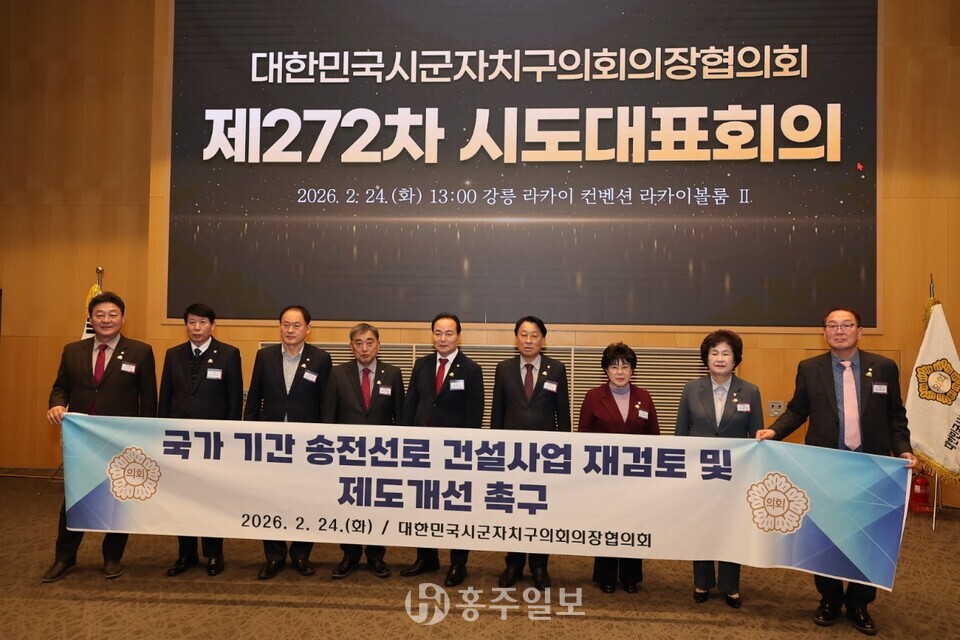 홍성군의회(의장 김덕배)는 지난 24일 강원특별자치도 강릉시의회에서 열린 대한민국시군자치구의회의장협의회 제272차 시도대표회의에서 ‘국가기간 송전선로 건설사업 재검토 및 제도 개선 촉구 건의안’(의안 제623호)이 원안대로 만장일치 채택됐다고 밝혔다.<사진>