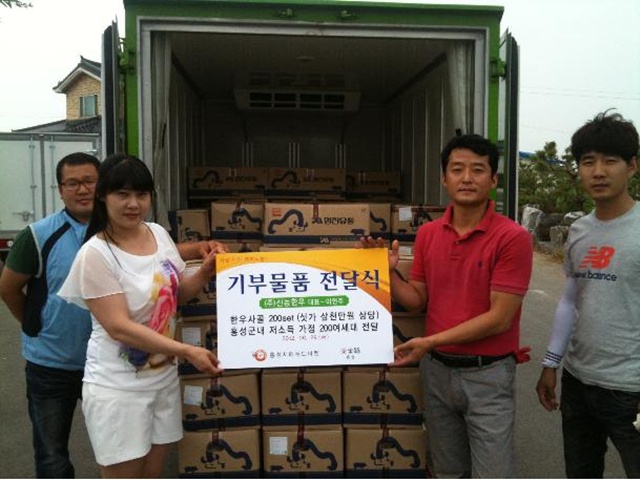군에 따르면 (주)신농한우에서 지역의 어려운 이웃들에 질 좋은 먹거리를 제공해 드리고자 한우국거리 세트를 서해푸드마켓에 기부했다.