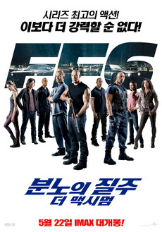 ◇ 분노의 질주: 더 맥시멈 = 감독 저스틴 린, 출연 빈 디젤, 드웨인 존슨. 최강의 적을 위해 다시 뭉쳤다. 억만 불이 걸린 한 탕에 성공한 후 정부의 추적을 피해 전 세계를 떠돌던 도미닉(빈 디젤)과 브라이언(폴 워커). 1급 수배자가 되어 고향으로 돌아갈 수 없게 된 그들 앞에 타고난 본능의 베테랑 정부 요원 홉스(드웨인 존슨)가 찾아온다. 거침없는 액션 본능과 환상의 드라이빙 실력의 특급 멤버들이 모두 모이고 최강의 적에 맞선 사상 최대의 프로젝트가 시작되는데… 러닝타임 130분, 15세 이상 관람가.