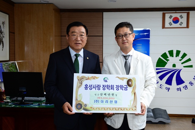 (주)아리산업 한정구 대표이사는 지난달 27일 홍성군청을 방문해 홍성사랑장학회(이사장 김석환 군수)에 장학금 300만원을 기탁했다. 저작권자 © 홍주일보 무단전재 및 재배포 금지 홍주일보 다른기사 보기 페이스북 카카오톡 URL복사 기사공유하기