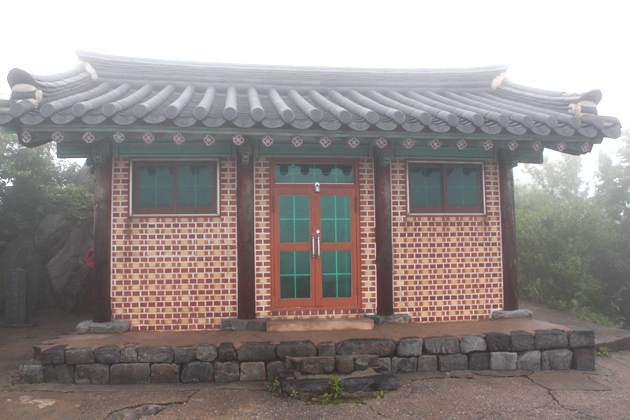 건너편 구릉 같은 봉우리에는 팔각정이 세워져 있고 그 앞에는 천제단이 있다. 해마다 홍성군에서 영신 고천대제(迎新 告天大祭)와 단군제를 여는데 제단으로 사용하고 있다. 전국의 산악회에서 산신제 제단으로 사용하기도 한다. 백월산도 곳곳에 기암괴석들이다. 하늘사다리로 불리는 가파른 나무계단 길을 내려서면 바위 전망대다. 여기에서 바라보는 지척의 용봉산과 홍성읍의 조망이 그림 같다. 바로 갈림길에서 직진하면 용화사가 있는 미력골재로 이어지는 능선 길이고, 우측이 산혜암으로 가는 길이다. 산혜암은 백월산의 동사면에 자리한 사찰로 신라 문성왕 때 무염국사가 창건했다고 전한다.