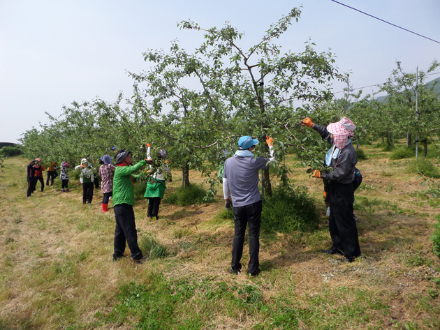 ▲ 홍성농업협동조합(조합장 정해명) 임직원 30여명은 지난 25일 홍성읍 월산리 정장로 씨 농가에서 사과 적과작업을 실시했다. 저작권자 © 홍주일보 무단전재 및 재배포 금지 최선경 기자 다른기사 보기 페이스북 카카오톡 URL복사 기사공유하기