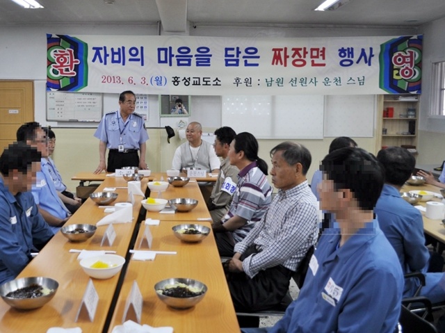 홍성교도소(소장 이태식)는 지난 3일 남원 선원사 운천 스님과 보령지역 교정협의회(정지완 위원)의 후원으로 전 수용자들에게 건강한 수용생활을 할 수 있도록 ‘짜장면 day’ 행사를 가졌다.