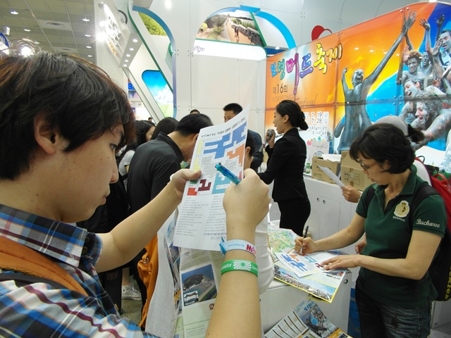 지난달 30일부터 2일까지 서울 코엑스에서 개최된 '2013 제26회 한국국제관광전'에 참가한 충남도 홍보관에서 관람객들이 퍼즐맞추기를 하고 있다. 사진=충남도 제공 저작권자 © 홍주일보 무단전재 및 재배포 금지 홍주일보 다른기사 보기 페이스북 카카오톡 URL복사 기사공유하기