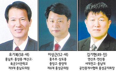 ◇ 누가 뛰나 = 제1 선거구는 2선구에 비해 구체적으로 후보자들이 거론되고 있다. 새누리당 2명, 진보정의당 1명 등 현재 총 3명의 출마후보자가 유권자들의 표심 잡기에 나서고 있다. 현직 유기복 도의원은 일찌감치 재출마 의지를 확실시했으며 홍성군의회 이상근 의원도 출마를 고심하고 있는 상황으로 당내 여론과 주변 의견을 들어 오는 12월 안으로 도의원 출마나 군의원 출마여부를 결정짓겠다는 의중이다.