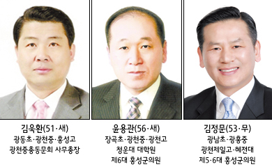 ◇ 누가 뛰나 = 다선거구는 2명의 군의원을 뽑는다. 후보군은 대략 3명 정도로 집약되고 있다. 3선과 재선에 도전하는 무소속 김정문 의원과 윤용관 의원이 모두 출마를 선언한 가운데 전 광천읍체육진흥회 김욱환 회장도 일찌감치 출마의사를 피력하며 표밭을 다지고 있다. 이들은 동창회나 향우회 등 지역사회 인맥을 중심으로 지지세를 규합해 나가고 있다.