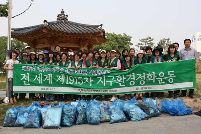하나님의교회 세계복음선교협회(총회장 김주철 목사) 홍성 성도 50여명은 지난 5일 홍성군 도심 일대 거리정화운동을 실시해 20L 종량제봉투 50개 분량의 쓰레기들을 수거했다.